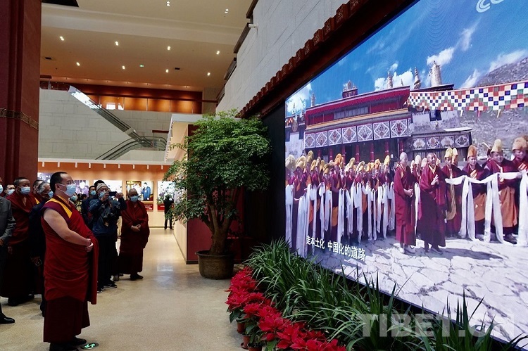 2021年7月21日至23日,习近平总书记亲临西藏考察调研,发表重要讲话,充分肯定西藏经济社会发展各项事业取得的巨大成就,就进一步做好新时代西藏各项工作提出了明确要求。在报道习近平总书记考察西藏新闻的数字屏前,班禅驻足停留,认真观看有关报道,不时低头沉思。