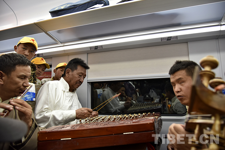 图为9月25日D8981次动车上,视障人士为乘客表演节目 摄影:王媛媛