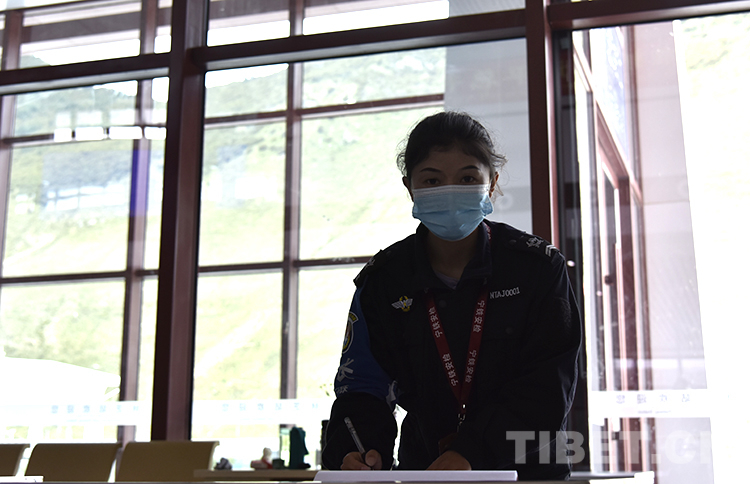 图为9月25日林芝站,安检员阿牛在岗位上工作 摄影:王媛媛