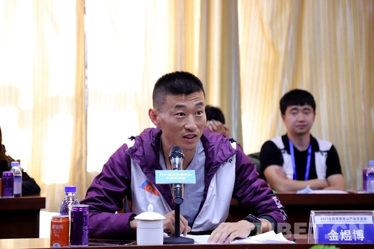 图为滑雪登山国家青年队教练金煜博作交流发言