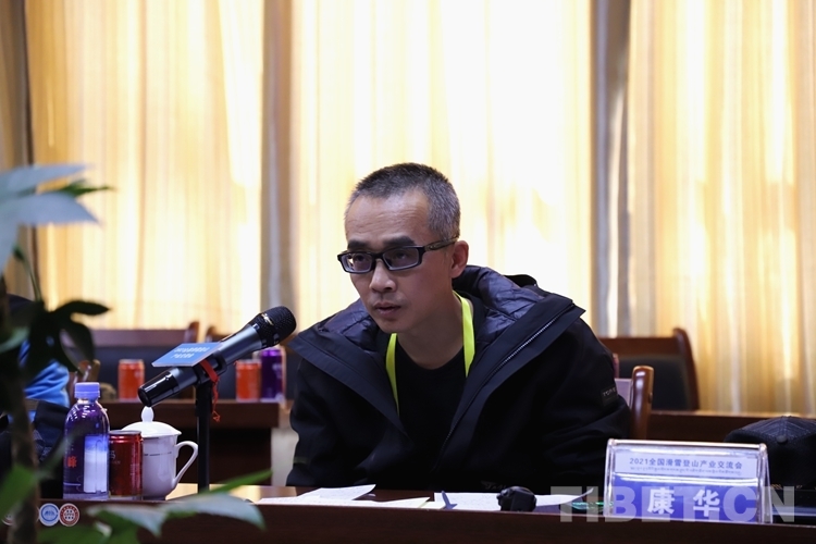 图为国内资深滑雪登山专家康华作交流发言
