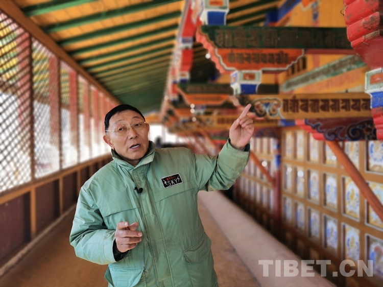 图为木雅·曲吉建才介绍古建筑文化 摄影:王淑
