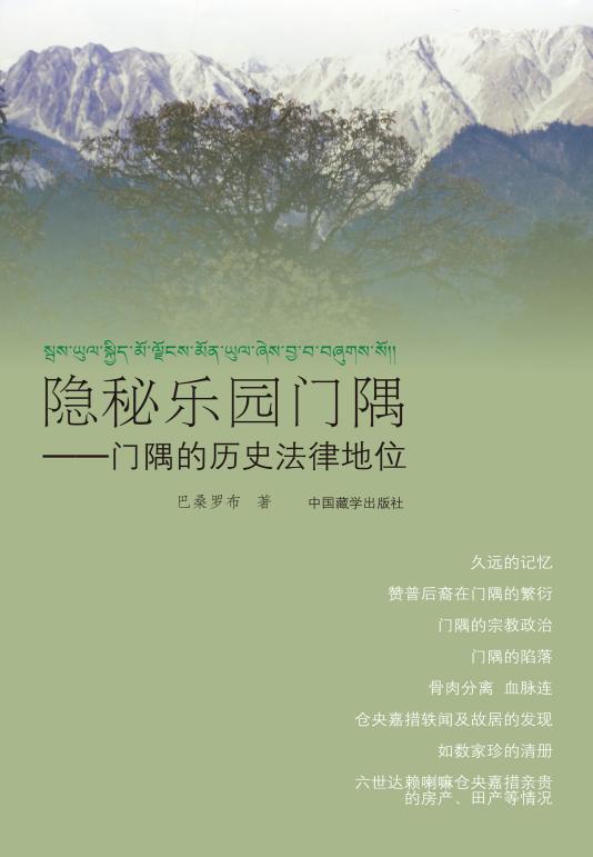 2014年5月由中国藏学出版社出版的《隐秘乐园门隅——门隅的历史法律地位》,是中国首部系统研究门隅的著作。该书由6章23节及13个珍贵史料附件组成,着重考证、叙述了9世纪中叶到19世纪丰富多彩而确凿的门隅、门巴族历史、文化,填补了国内“门隅”研究领域的空白。作者巴桑罗布先生出生于门隅的错那县,出于对家乡的热爱,他经过数十年收集和整理相关资料,完成了这部重要的著作。巴桑罗布从门隅地名的文化内涵、吐蕃赞普世袭在门隅的繁衍、赞普世系到活佛转世、六世达赖喇嘛仓央嘉措与门隅的情结、门隅复合型行政体制及其运作、门隅的沦陷、非法的“麦克马洪线”、门隅水羊清册简介等内容向读者详细介绍了门隅曾经的历史,提出了门蕃同源的历史概念以及门隅是中国不可分割领土的历史事实。
