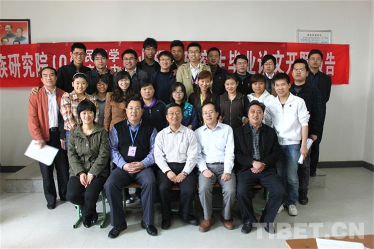 2012年4月,民族研究院2010级专门史专业硕士毕业论文开题报告师生合影。前排右二是孙林教授,最后一排左四是作者 作者供图