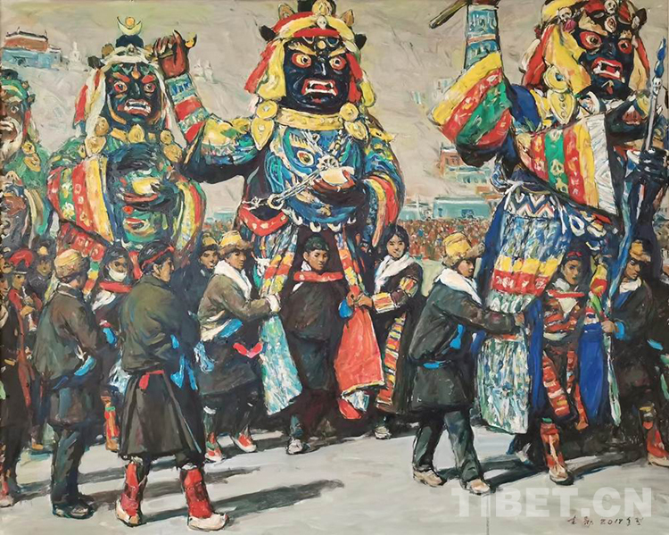 图为《藏历新年萨迦禳祈福》(油画) 潘世勋 2017 翻拍:魏辉