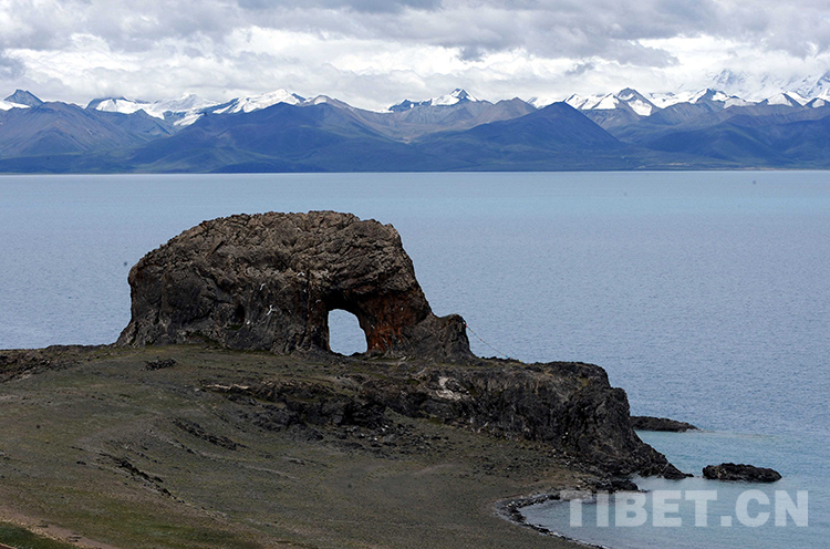 位于班戈县纳木错北岸的“圣象天门”景观。远处是绵延的念青唐古拉山脉(唐召明2012年8月4日摄)