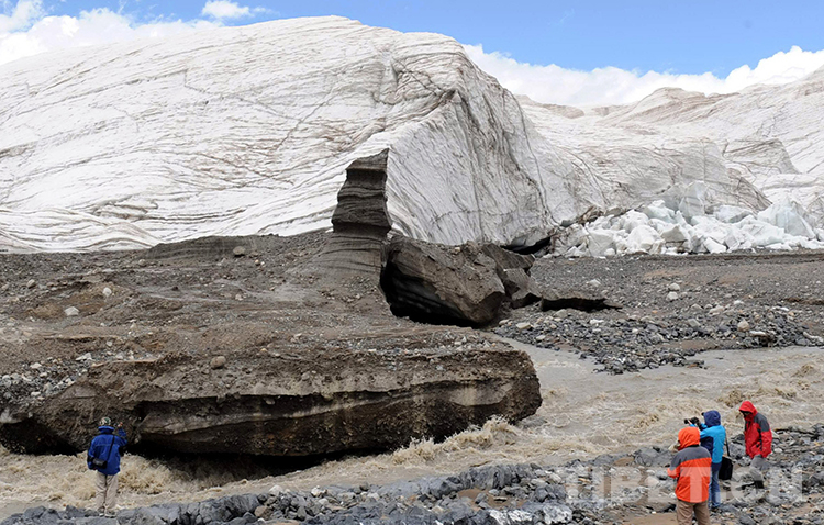 在双湖县境内的普若岗日冰川,游客们在拍照游览(唐召明2009年8月1日摄)