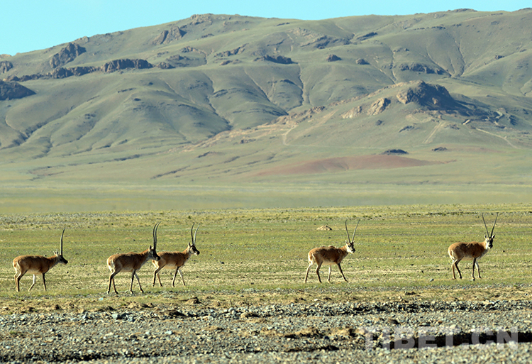 在羌塘国家级自然保护区悠闲漫步的国家一级保护动物藏羚羊(唐召明2019年9月20日摄)