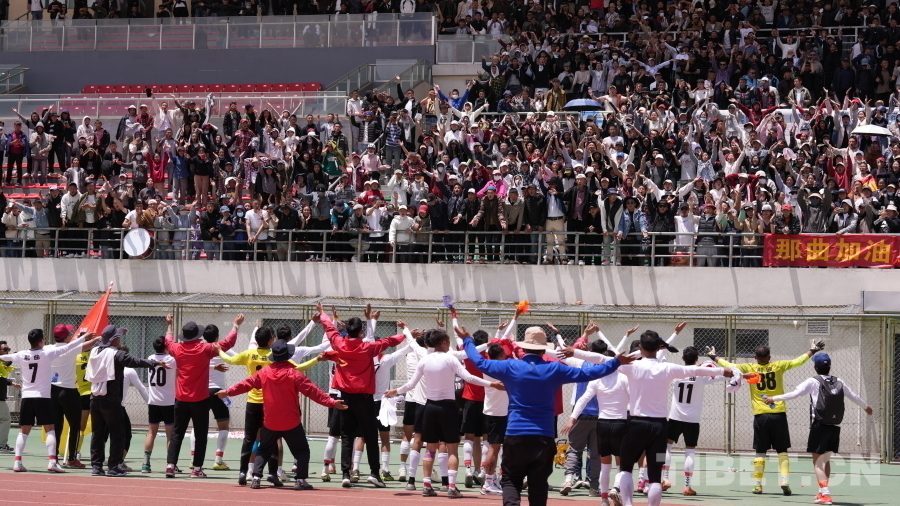 图为那曲代表队和球迷们共同庆祝 摄影:旦曲