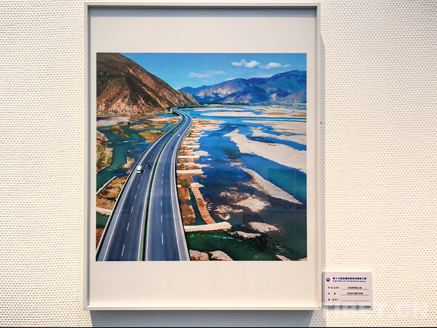 图为第17届西藏珠穆朗玛摄影大展展出的西藏交通厅提供的《拉林高等级公路》 翻拍:王淑