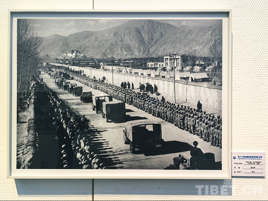 图为第17届西藏珠穆朗玛摄影大展展出的蓝志贵于1954年12月所拍摄的《车队第一次开到拉萨》 翻拍:王淑