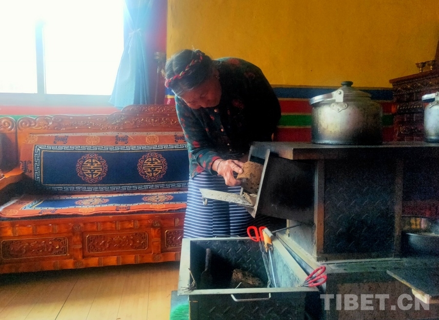 中国西藏网讯 10月14日,“路见西藏 中央媒体‘两路’行”网络主题活动记者一行走进昌都市左贡县旺达镇兵达村。刚走进次央白宗阿妈家里,热情好客的阿妈就拿出家中自制的奶渣、果干等邀请我们品尝。谈话间,阿妈走到客厅中央给炉子添火。她手中土黄色的“蜂窝煤”吸引了记者的注意。“这是牛粪蜂窝,是我们村里合作社的产品。”兵达村乡村振兴专干归桑央宗介绍说,“和直接使用牛粪做燃料相比,牛粪蜂窝的燃烧时间更长;有了牛粪蜂窝,我们还减少了对树木的砍伐,更好地保护了植被。”