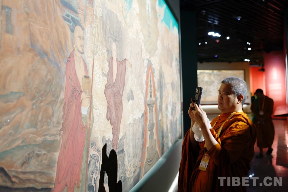中国西藏网讯 10月15日,第六届世界佛教论坛文化展陈揭幕仪式在浙江宁波弥勒博物馆举行,数字技术、人工智能的运用为本届论坛增添亮点。该展览包含“和合共生——世界佛教文化艺术展”、“同愿同行——中国佛教传承发展主题创作展”、“翰墨佛缘——‘中国历代绘画大系’佛教艺术珍品展”三个展项,辅以影像、互动装置和3D打印等当代艺术表现手段,为海内外与会嘉宾呈现佛教文化艺术的绚烂景观和卓越成就,使观众们从艺术形式中领略中国佛教文化的精深内涵,助益于此次论坛更好的交流互鉴。(中国西藏网 记者/赵婧茹 桑吉)