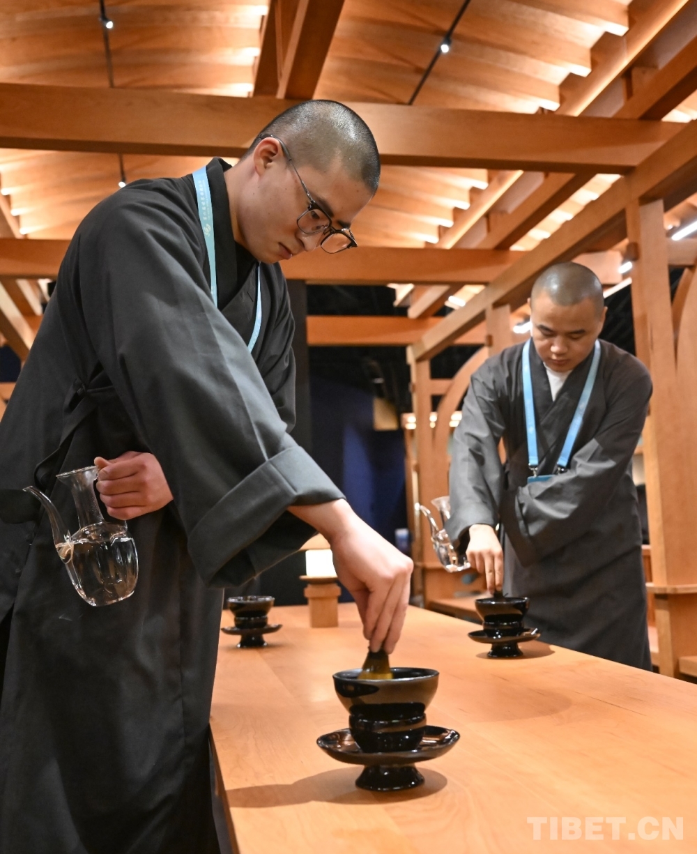 图为与会者在“和合共生——世界佛教文化艺术展”上体验宋式点茶