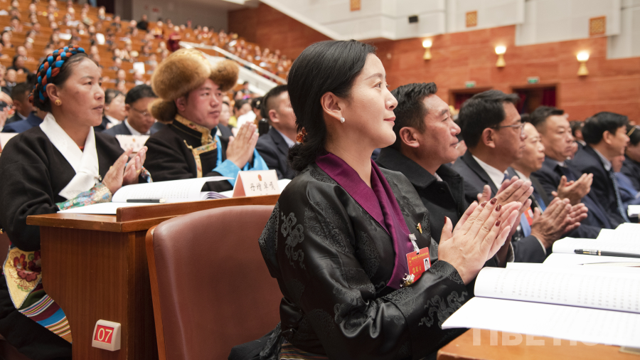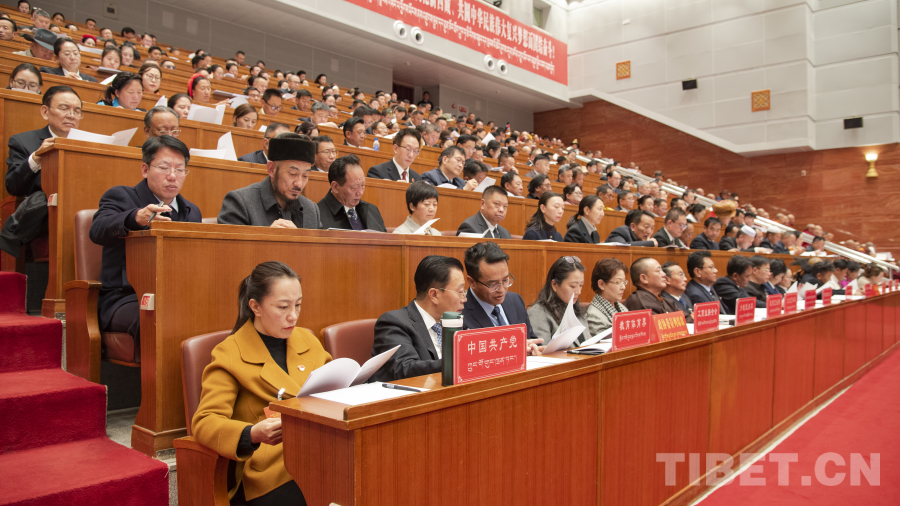 图为洛桑江村受西藏自治区人大常委会委托作西藏自治区人民代表大会常务委员会工作报告 摄影:赵振宇