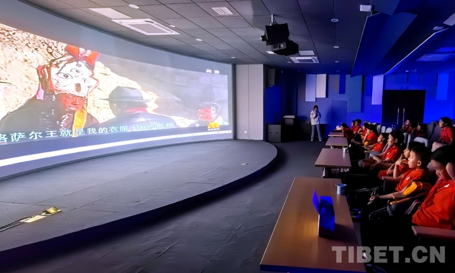 图为西藏阿里噶尔县孔繁森小学师生在山东聊城孔繁森精神教学基地观看电影《孔繁森》 摄影:刘莉
