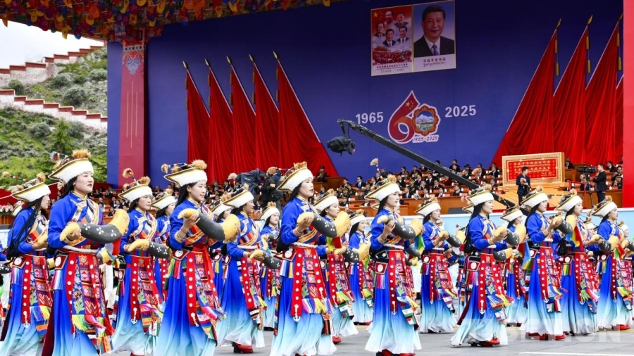 资料图:西藏自治区成立60周年庆祝大会现场 摄影:赵振宇
