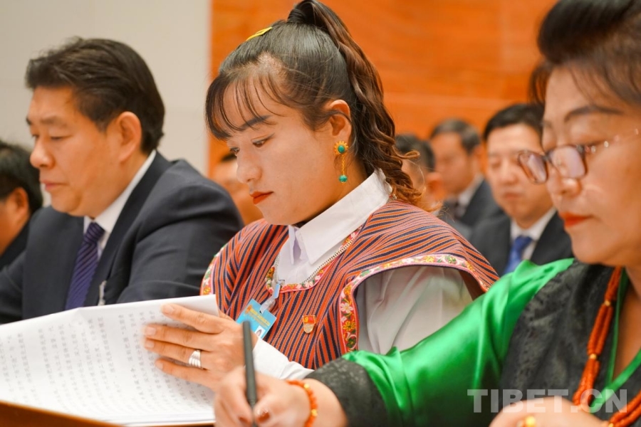 资料图:列席西藏自治区两会的门巴族全国人大代表罗布央宗 摄影:赵振宇