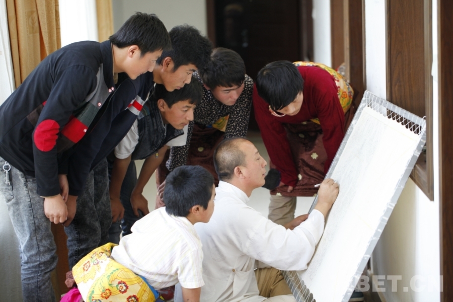 在这次活动中,我接触到了众多唐卡大师,他们宛如艺术殿堂中的大师级工匠,各自散发着独特的光芒。众多唐卡画师里面,给我印象深刻的是娘本。为了了解娘本社会公益和爱心助学的事情,今年八月份我们去他的画院拜访。