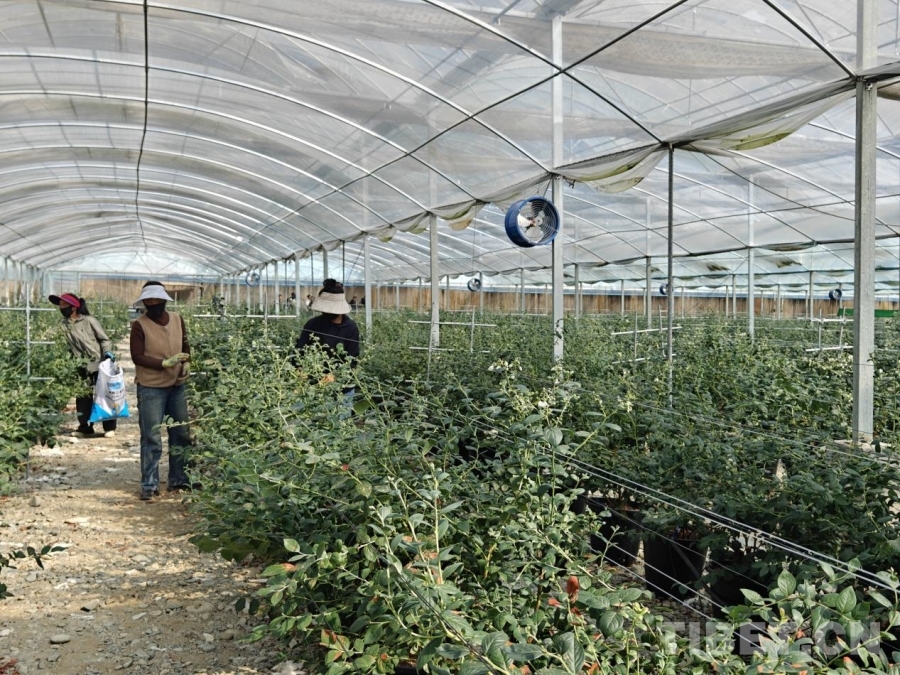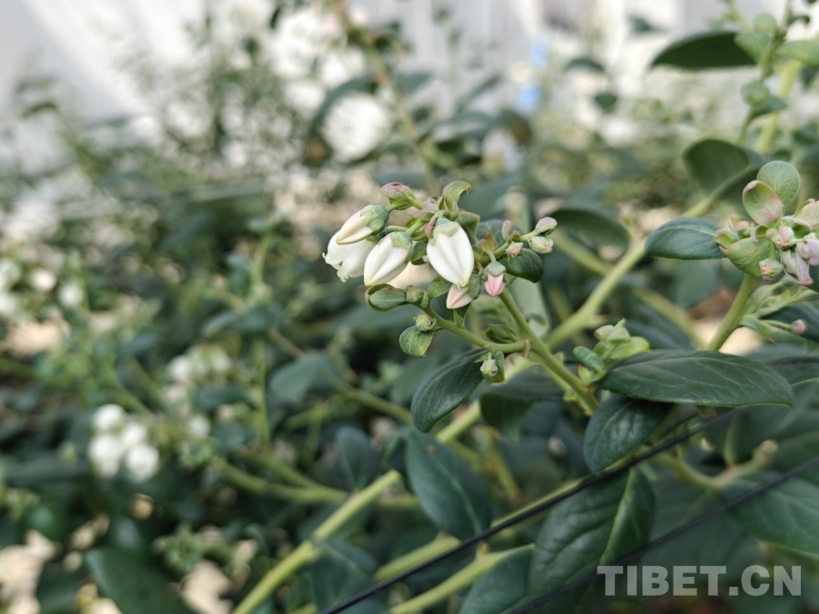 图为戈壁田园现代农业项目内待结果的蓝莓花