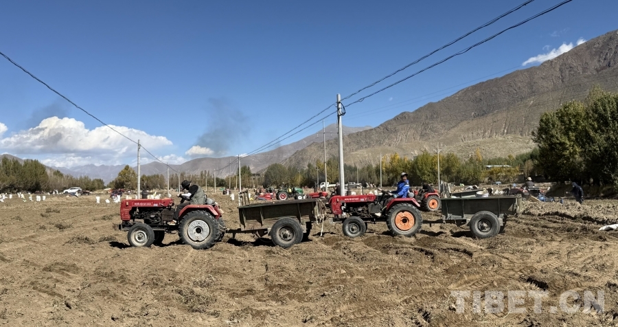 中国西藏网讯 刨挖、分拣、装袋……近日,西藏自治区日喀则市南木林县迎来土豆丰收季。田间地头,村民们忙碌的身影与轰鸣的农机交织,一幅热气腾腾的丰收图景在湘巴大地上徐徐展开。