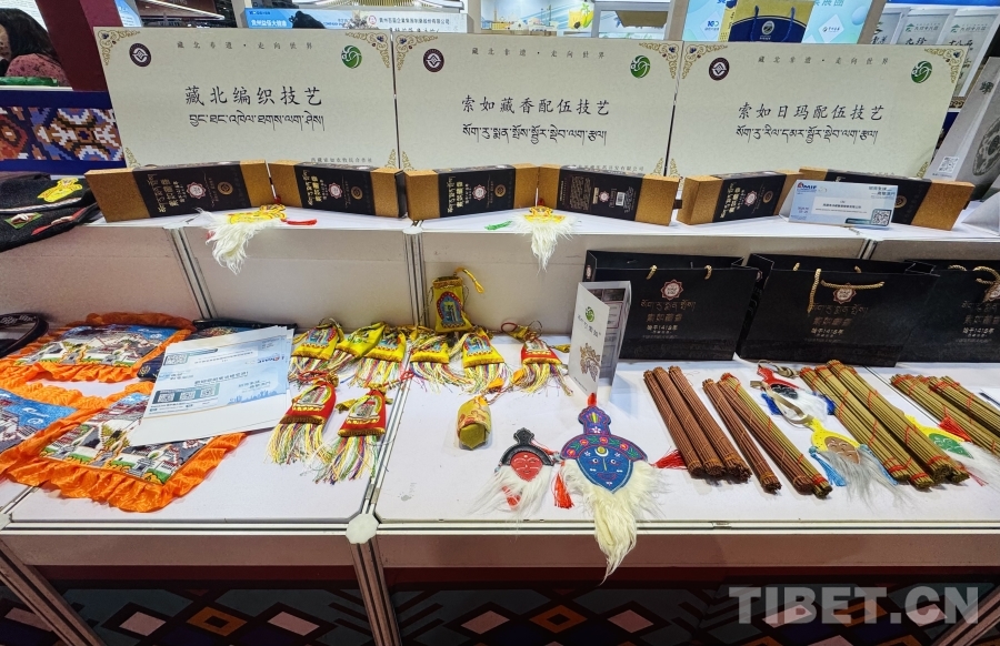 图为“西藏和川滇甘青州县展馆”参展企业展品 摄影:易文文