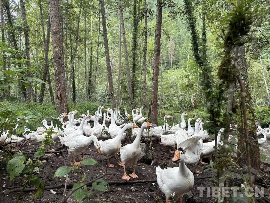 “嘎嘎——!”清晨,察隅的山雾还没散尽,上察隅镇珠联村的山林间,上千只大白鹅已经吵成一片。这些圆滚滚的“白团子” ,或扑棱着翅膀在水塘中嬉戏,引吭高歌;或憨态可掬地在林间来回踱步,啄食杂草……把这个2024年10月才成立不久的搬迁新村,搅得热闹非凡。