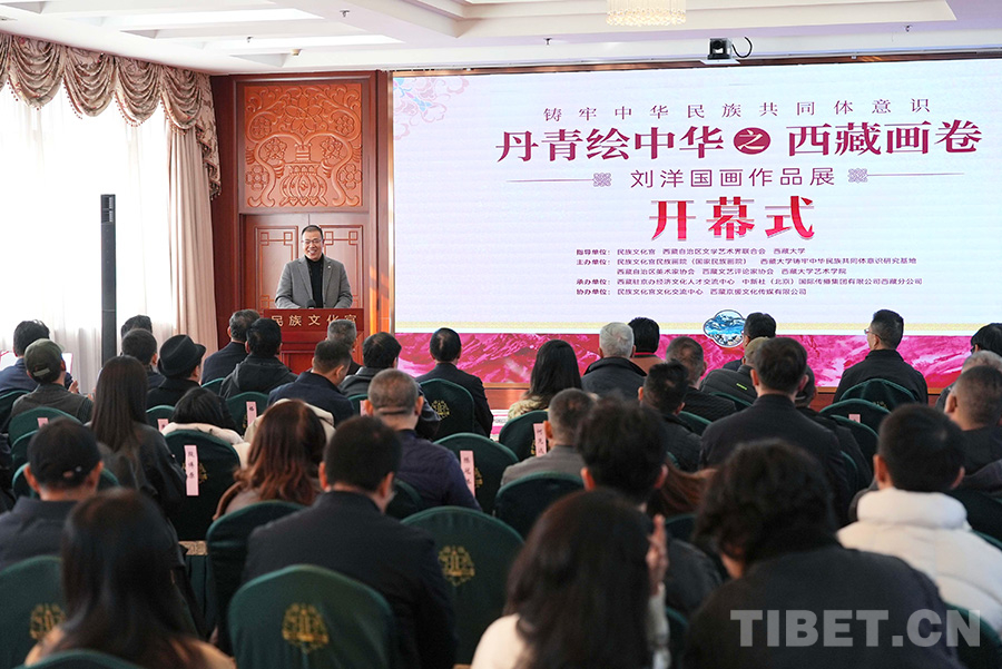 图为“铸牢中华民族共同体意识・丹青绘中华之西藏画卷”刘洋国画作品展开幕式 摄影:姚浩然