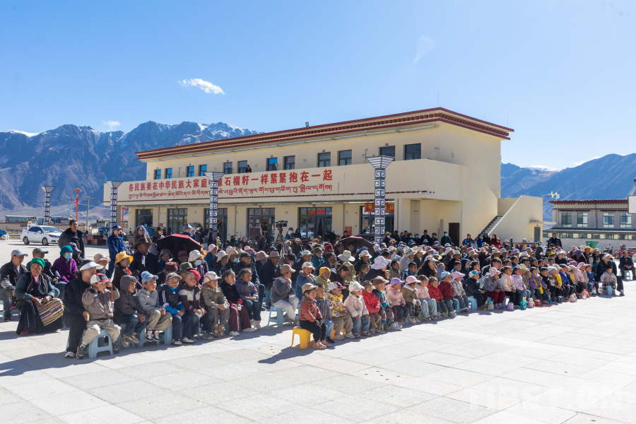 图为山南市消防救援支队岗拉美朵文艺队“农牧区暖冬消防行”巡演首演现场