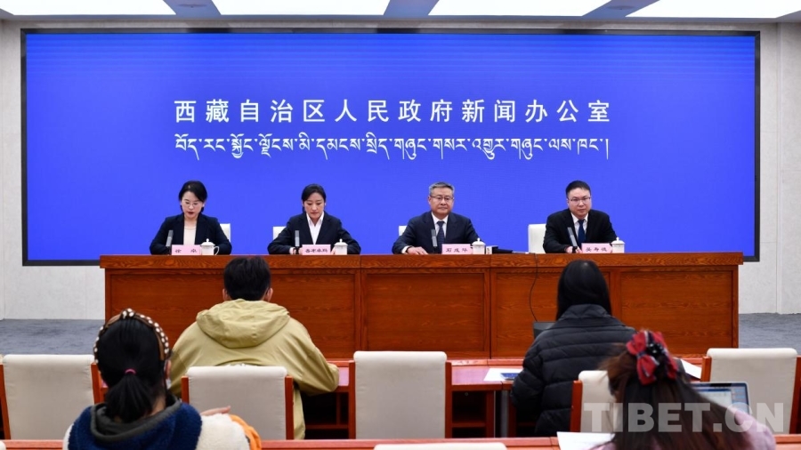 图为西藏自治区新闻发布会现场 摄影:赵振宇