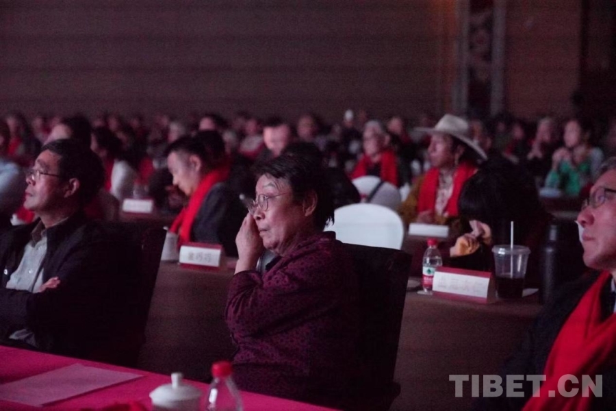 图为在首映式观影过程中,援藏干部动情落泪 制片方供图