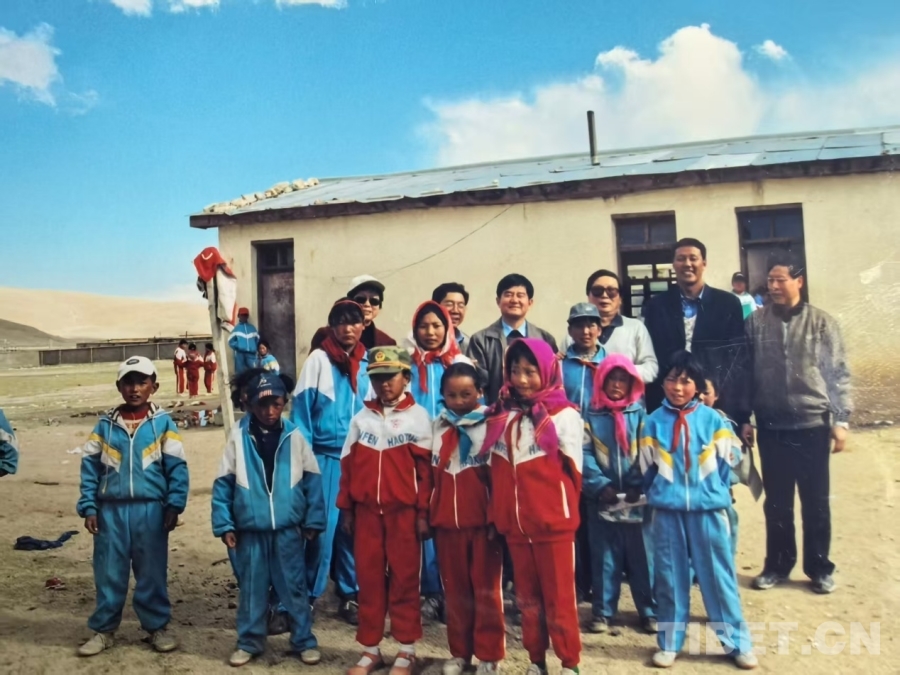 图为李建新(最后一排左三)于2002年6月在那曲尼玛县吴尔多乡研究改造小学校舍 受访者供图