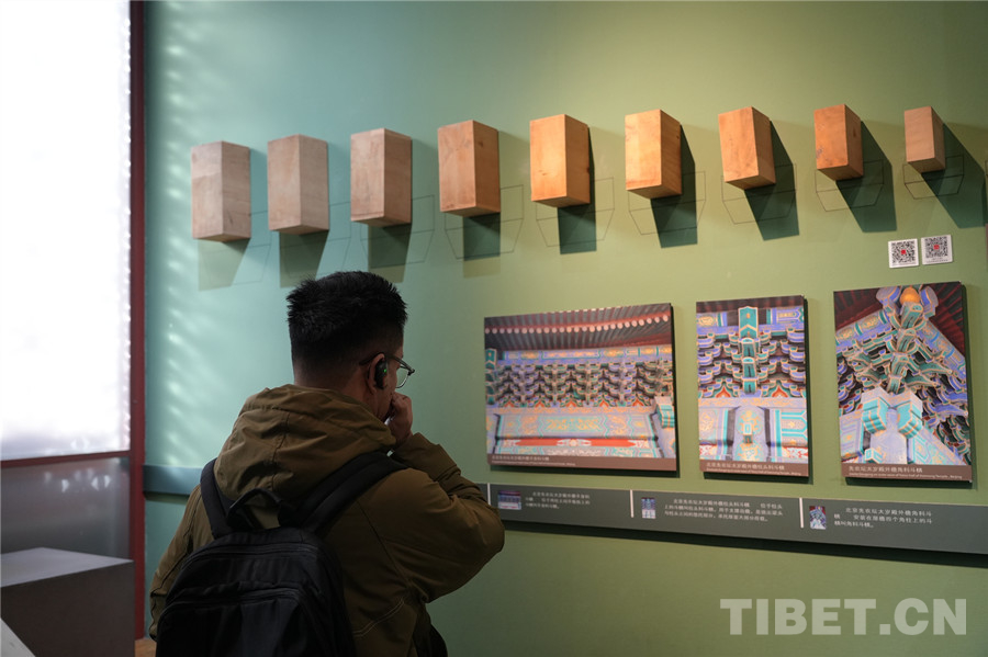 图为游客正在北京古代建筑博物馆内参观展览 摄影:王妍丹
