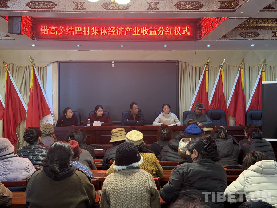 中国西藏网讯 错高,在藏语里是“湖头”的意思。错高乡,坐落在美丽的林芝市工布江达县巴松错景区尽头。12月25日,一场别样的分红仪式在错高乡结巴村举行,全村147户528名村民2025年共获得了1768030.63元的分红收入。这笔分红收入来源于坐落于此的巴松措松赞林卡酒店。这不仅是西藏民营企业呼应国家“乡村振兴”“共同富裕”的责任担当,更是当地“党支部+企业+农户”共建模式稳定运行、成效凸显的体现。