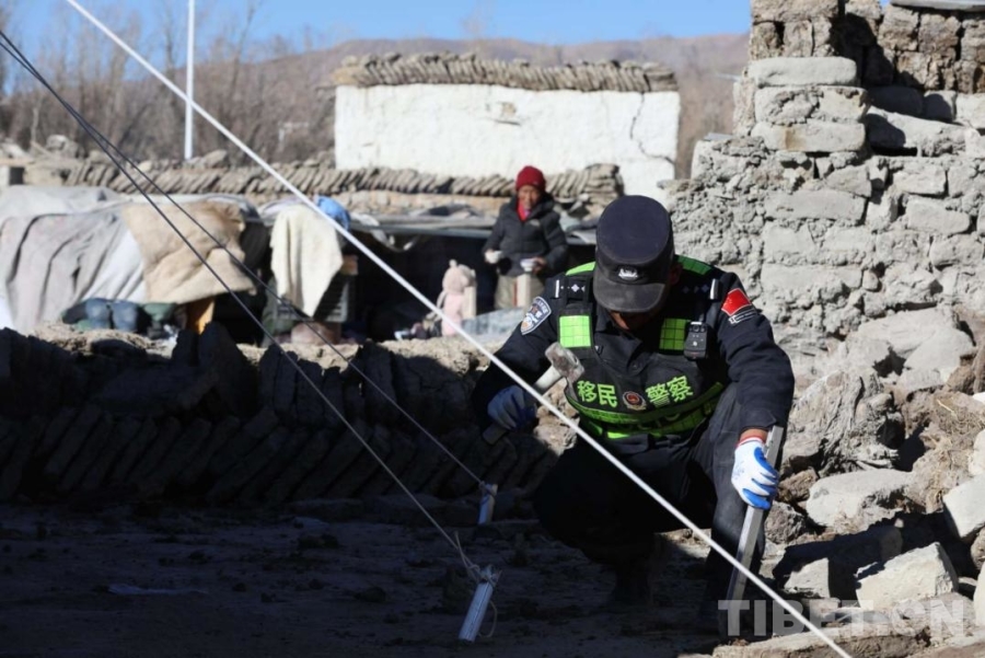 图为西藏定日地震受灾最严重的村庄之一定日县长所乡白玉村首批赶来的救援力量西藏出入境边防检查总站移民管理警察开展救援工作(摄于2025年1月7日) 摄影:郭远敬
