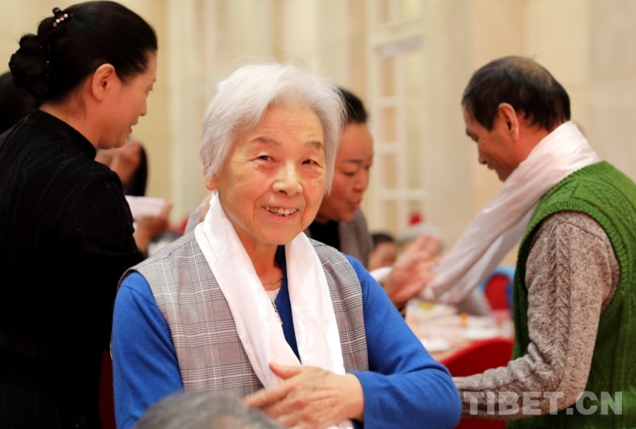 随后,许成仓等向“老西藏”们敬献哈达,并就大家关心的西藏经济社会发展情况进行了介绍。