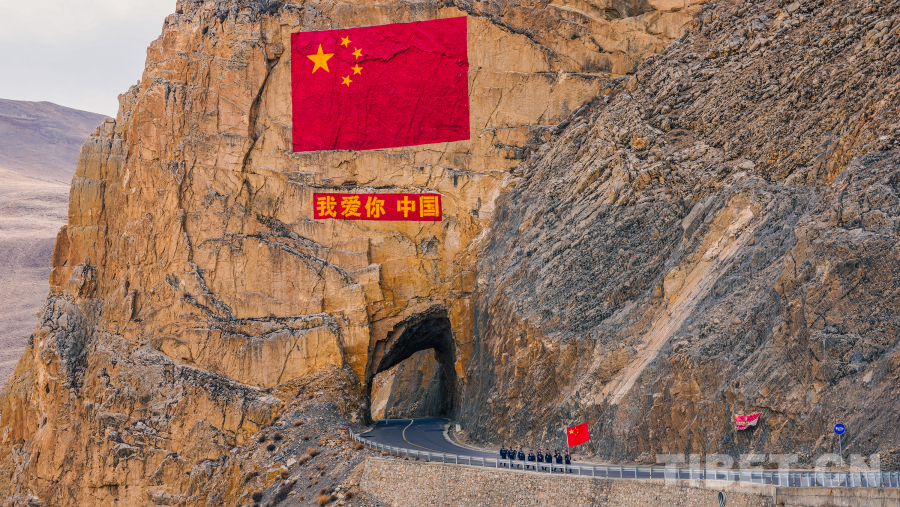 中国西藏网讯 2月6日,在海拔4300米的高原之上,西藏边检总站日喀则边境管理支队扎西宗边境派出所的民警们,列队巡逻在“我爱你中国”的巨幅标语下。鲜红的字迹衬着苍茫山体,庄严如誓言。