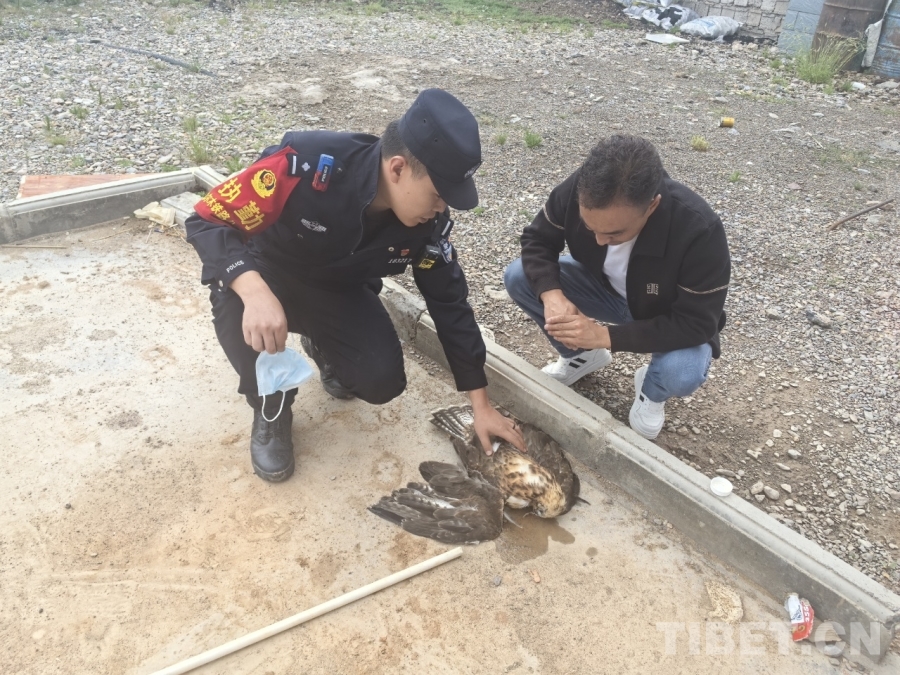 图为沱沱河站派出所民警实时观察受伤隼的状态