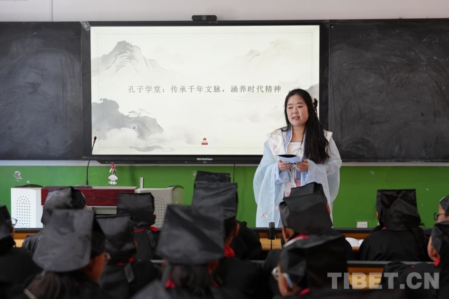有一次,殷靓靓穿着汉服走进课堂,飘逸的衣袂瞬间吸引力所有孩子的目光。看着孩子们满眼的好奇,她和援藏团队的老师们萌生了新想法——依托山东儒家文化发源地的底蕴,在学校开设中华传统文化兴趣班,建起“孔子学堂”。在这里,孩子们读经典、学礼仪,还和济南的小伙伴同步开展传统文化活动,让孩子们对千里之外的山东,多了一份更深的亲近与向往。