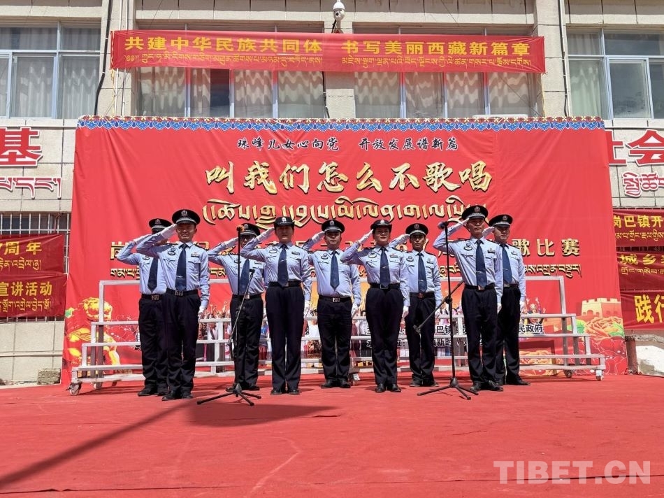 岗巴边境派出所民警参加“叫我怎么不歌唱”红歌比赛 摄影:普琼