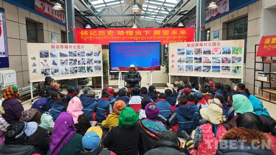 3月26日,在日喀则偏吉边境派出所,以“铭记历史 珍惜当下 展望未来”为主题的系列纪念活动举行。民辅警们围坐在一起,中间是79岁的老党员朗康,经历了民主改革的他,正以自己的亲身经历为派出所民警们讲述那段黑暗的过往。