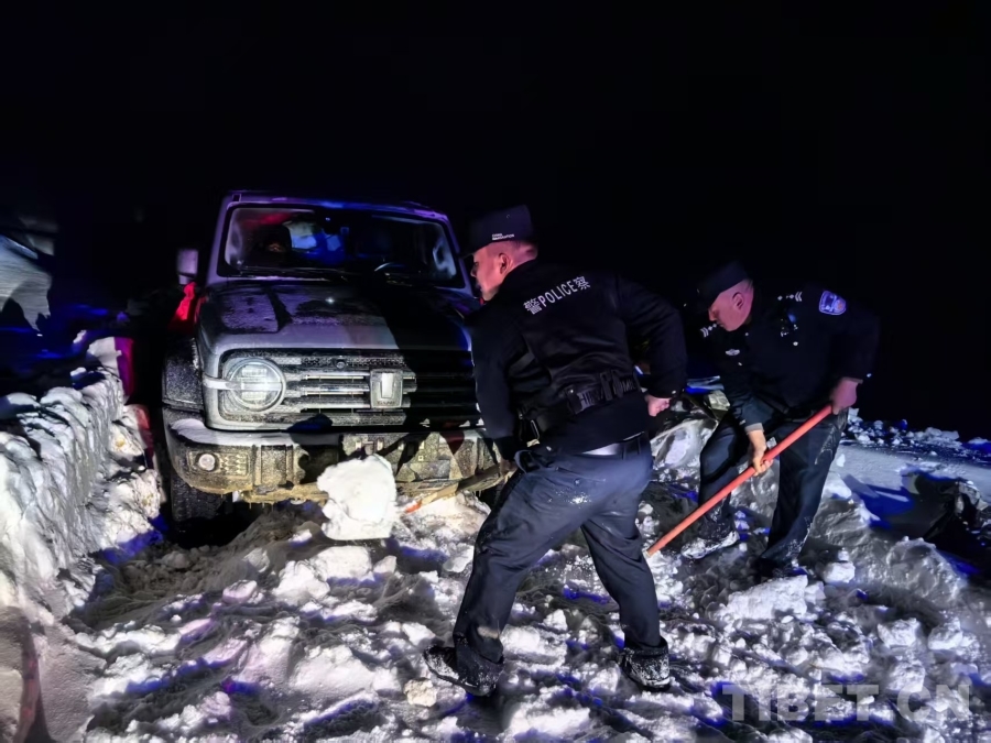 风雪交加中,民辅警们顶严寒、战风雪,经过持续奋战,两辆被困车辆成功脱困。随后,民警驾驶警车在前开路,引导被困车辆沿冰雪路段缓慢下行,于当日9时30分安全抵达察隅县城,并妥善安置,4名群众身体状况均未出现异常。