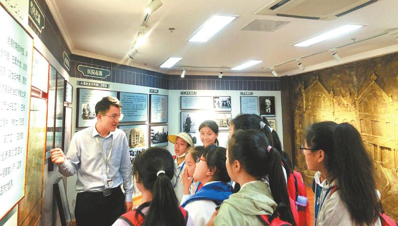 四川大学华西医院党委组织部组织科(党校办公室)科长李锴科(左)组织凉山州昭觉县新城镇跳坝村的孩子到成都参观院史馆。 受访者供图