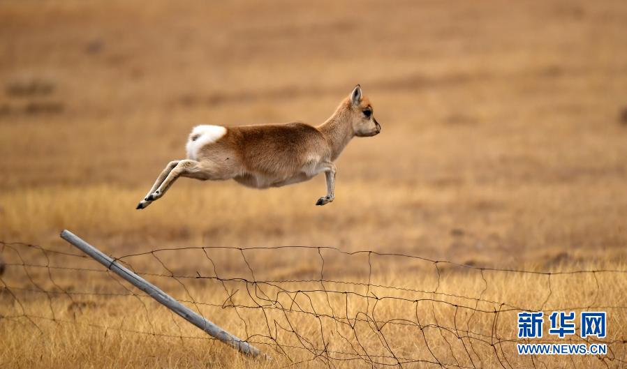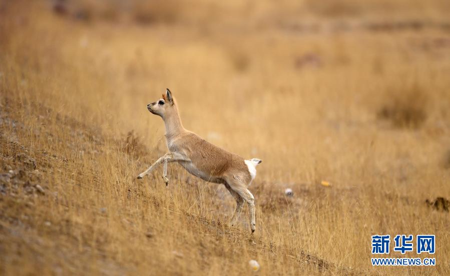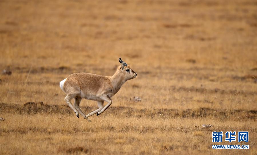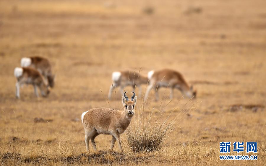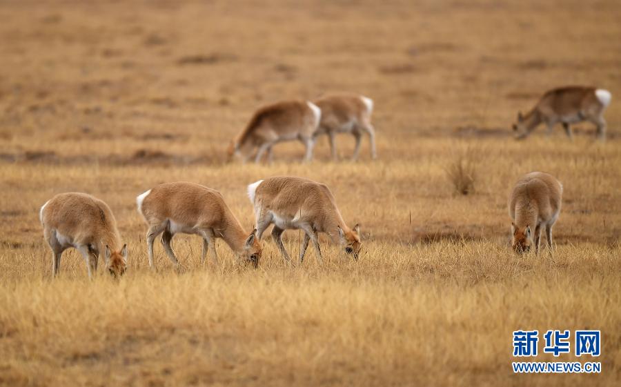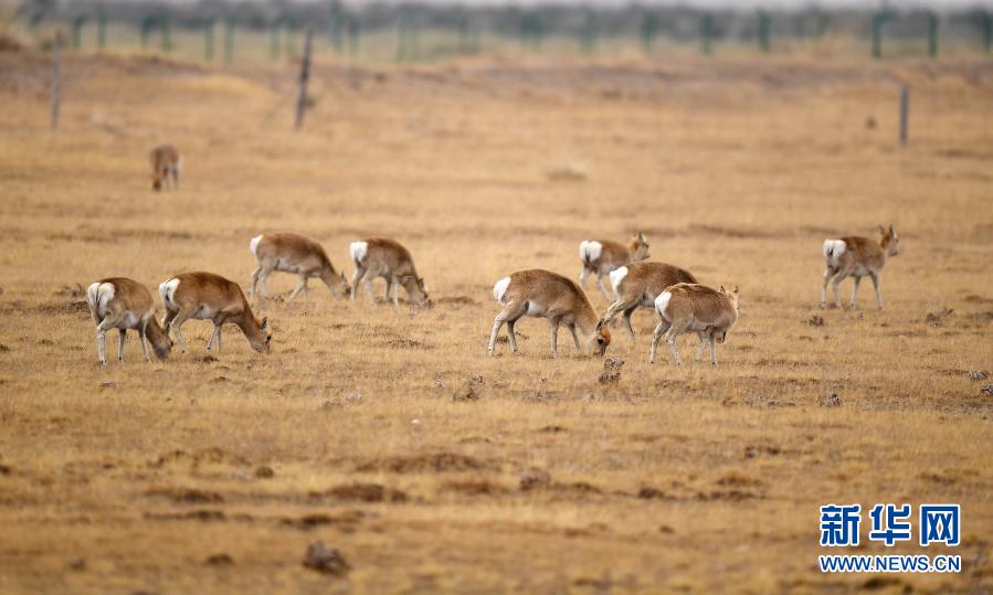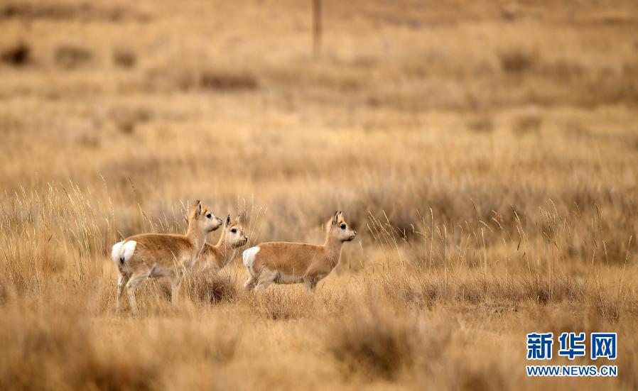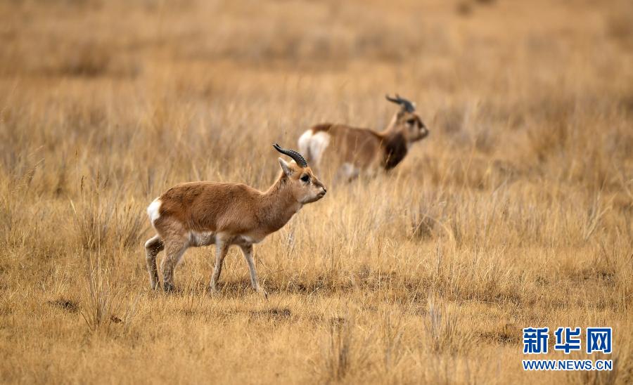 12月17日在青海海北刚察县哈尔盖镇的草原上拍摄的普氏原羚。新华社记者 张宏祥 摄