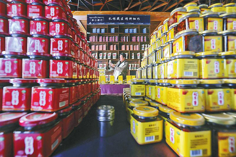 1月6日,雅江县的电商正在备货,准备将用松茸制作的松茸酱发往各地。尹钢 摄