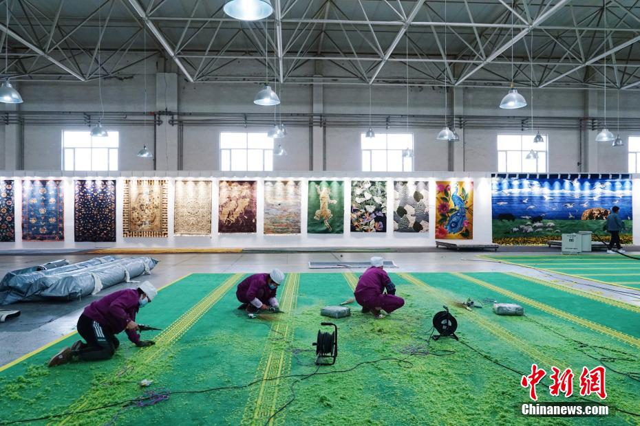 图为工人整理藏毯。马铭言 摄