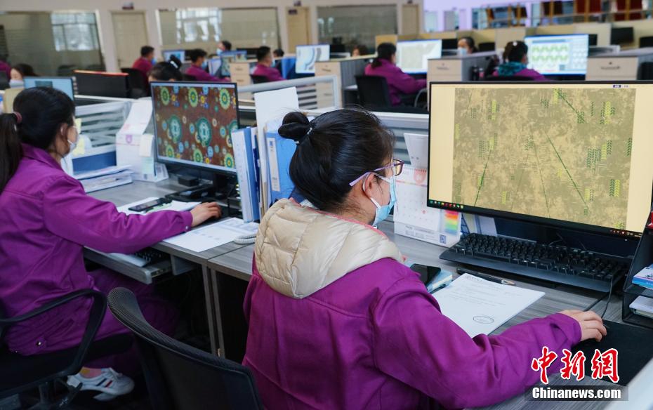 图为设计师正在设计藏毯纹样。马铭言 摄