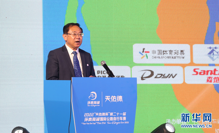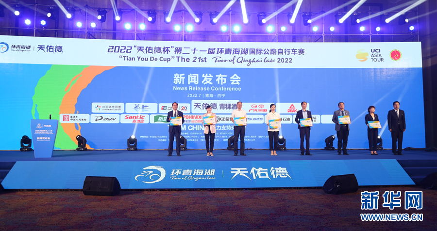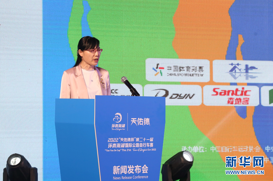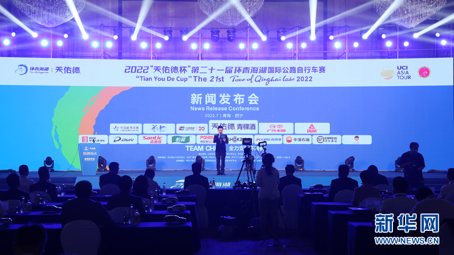 2022第二十一届环青海湖国际公路自行车赛新闻发布会现场。新华网 卡娅梅朵 摄