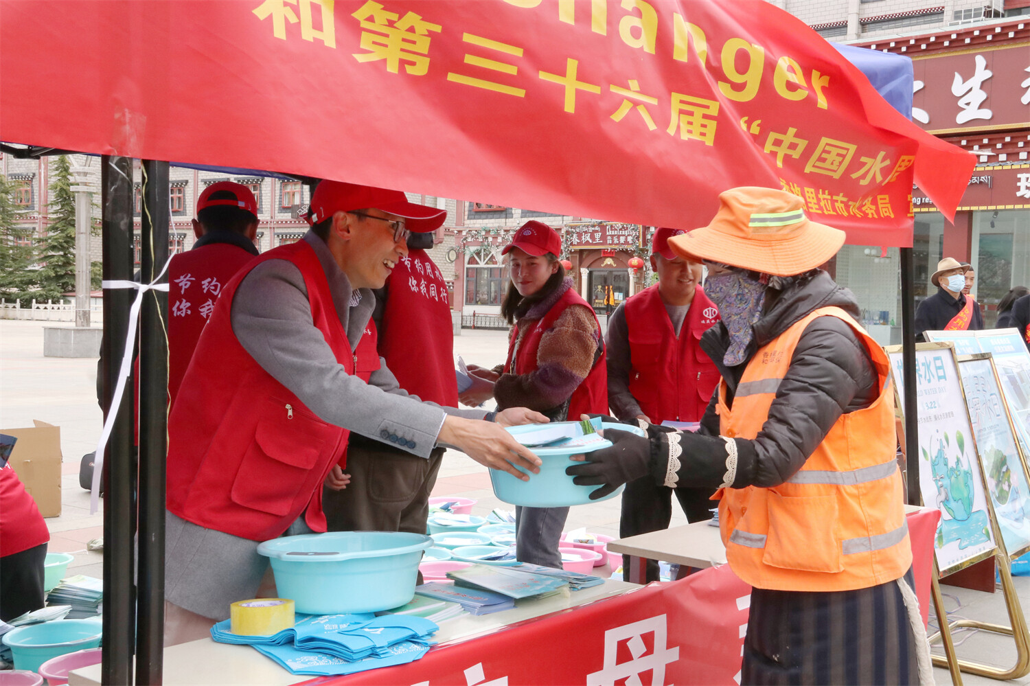 3月22日上午,州水务局联合香格里拉市水务局、云南省水文水资源局大理分局迪庆巡测队在坛城广场开展“世界水日”“中国水周”宣传活动,向市民普及涉水法律法规等知识,提升群众保护水资源的意识。