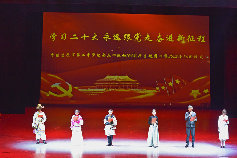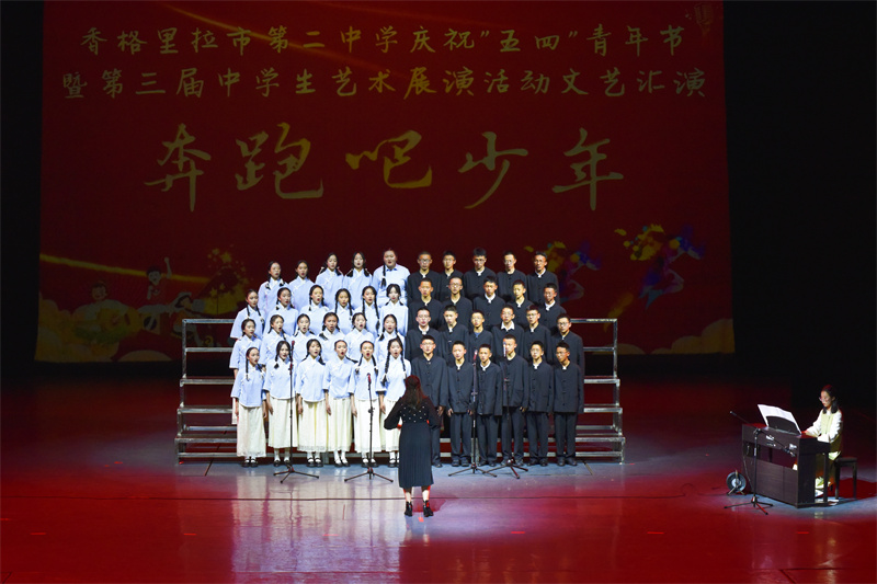 5月4日,香格里拉市第二中学在独克宗古城花巷剧院开展庆祝“五四”青年节暨香格里拉市第二中学第三届文艺汇演活动。